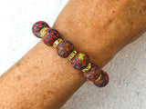 This bracelet/earrings set is made exclusively by Sandy herself. Find the two special SB designs on one of the bracelet beads and one of the earring beads that indicate these items were made by Sandy!