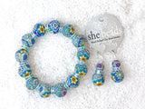 This bracelet/earrings set is made exclusively by Sandy herself. Find the two special SB designs on one of the bracelet beads and one of the earring beads that indicate these items were made by Sandy!
