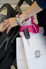 Never lose your keys again with this all-clay bracelet keychain. The big, smooth, colorful handmade beads make it easy to find in a purse or backpack. Or, slip onto your wrist for a stylish alternative when you're on the go. Extremely durable, plus waterproof! One of our most popular gifts, and one size fits all.