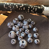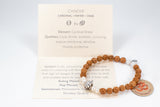 Each of these Intention Beads is created when the Sun (our light & vitality) transits through the zodiac. And each makes an entire trip around the world: first the bead is sculpted in the U.S., sent across the globe to Bali, strung/hand-knotted in Bali with rudraksha beads and gemstones, blessed in a Balinese temple, and sent back creating a full circle around the world!