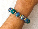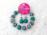 This bracelet/earrings set is made exclusively by Sandy herself. Find the two special SB designs on one of the bracelet beads and one of the earring beads that indicate these items were made by Sandy!